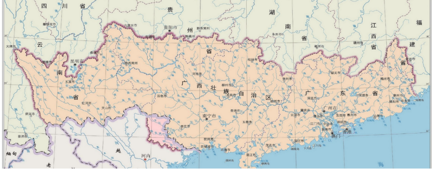 珠江串,这串以前关注度低点,一是珠三角集中度高,且珠江长度小,但是其地缘意义不容小觑且在增加,因为这是一条从云贵高原到南海的区域,对我国深度经营东南亚意义重大,节点城市是广州、梧州、南宁、昆明等。
